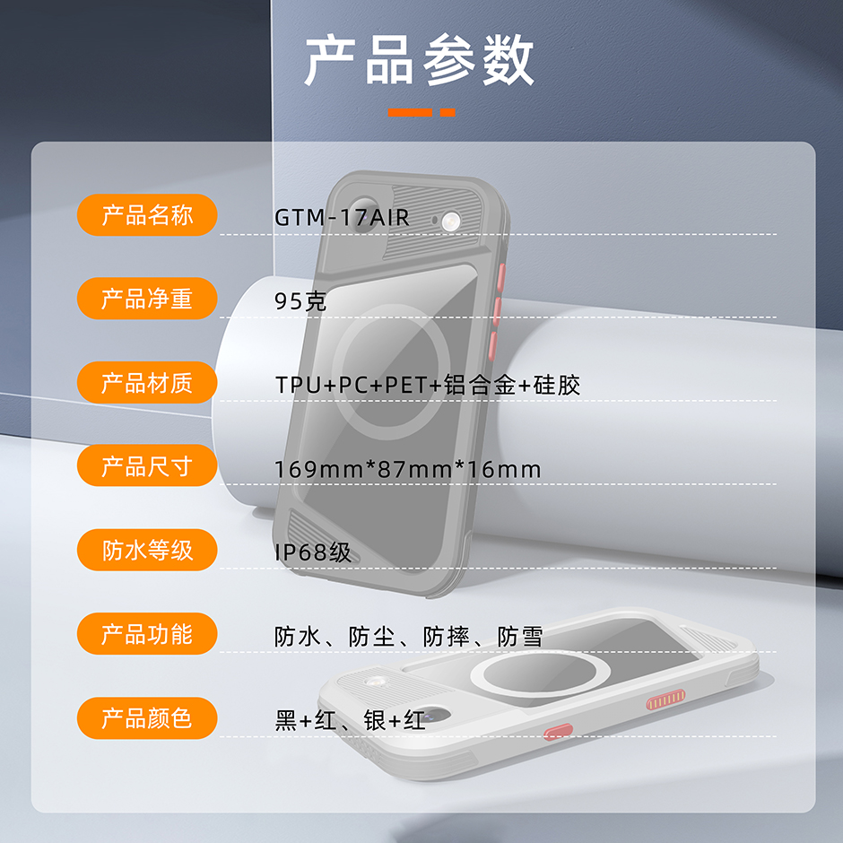 2025金属款GTM系列苹果iPhone 17AIR户外运动游泳潜水全包防水防摔保护壳套