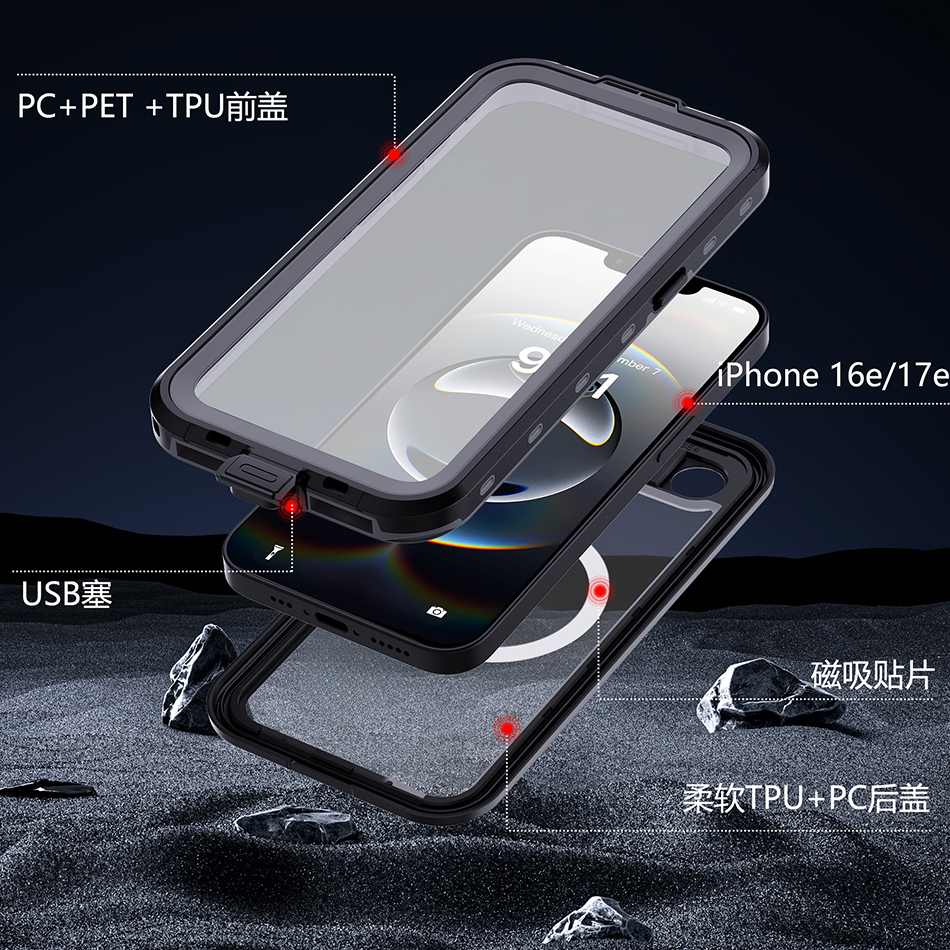 工厂直供适用苹果apple iPhone 16e/17e户外运动游泳潜水手机防水防摔保护壳套